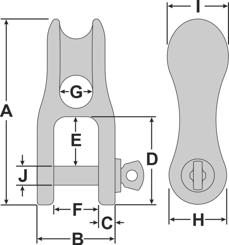 | Typ | A mm | B mm | C mm | D mm | E mm | F mm | G mm | H mm | I mm | J mm | für Tauwerk | Arbeitslast kg | Bruchlast kg | Gewicht g |