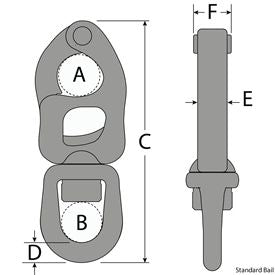 | Typ | A mm | B mm | C mm | D mm | E mm | F mm | Gewicht g | Arbeitslast kg | Bruchlast kg | für Bootsgröße |