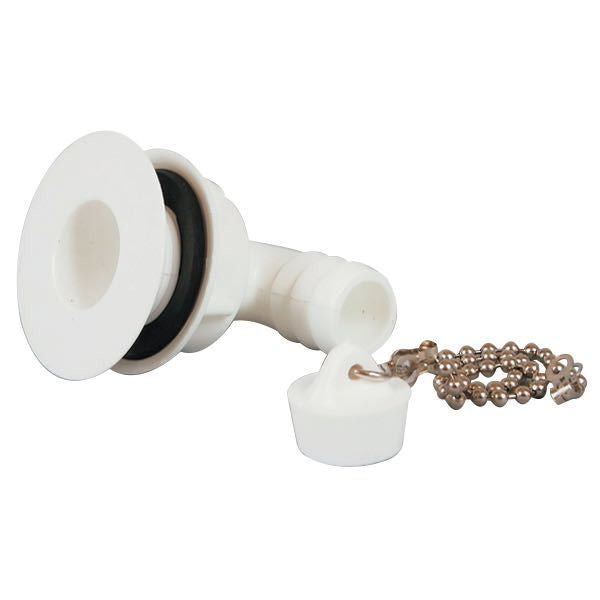 Kunststoff-Ablauf mit Stopfen kann zum Ablassen beim Duschen, Händewaschen usw. verwendet werden. Passend für Schlauch Ø 20 mm. Stopfen 19 mm
