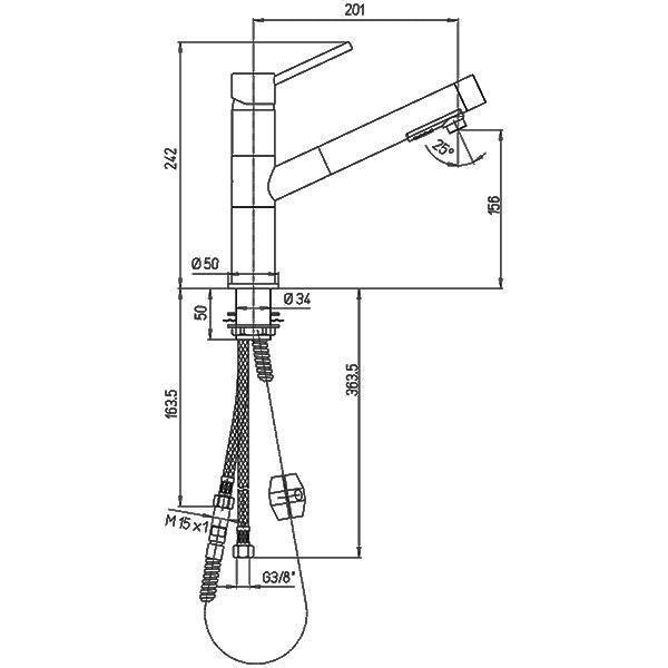 Eine sehr elegante Einhebelmischer mit ausziehbarer Brause.