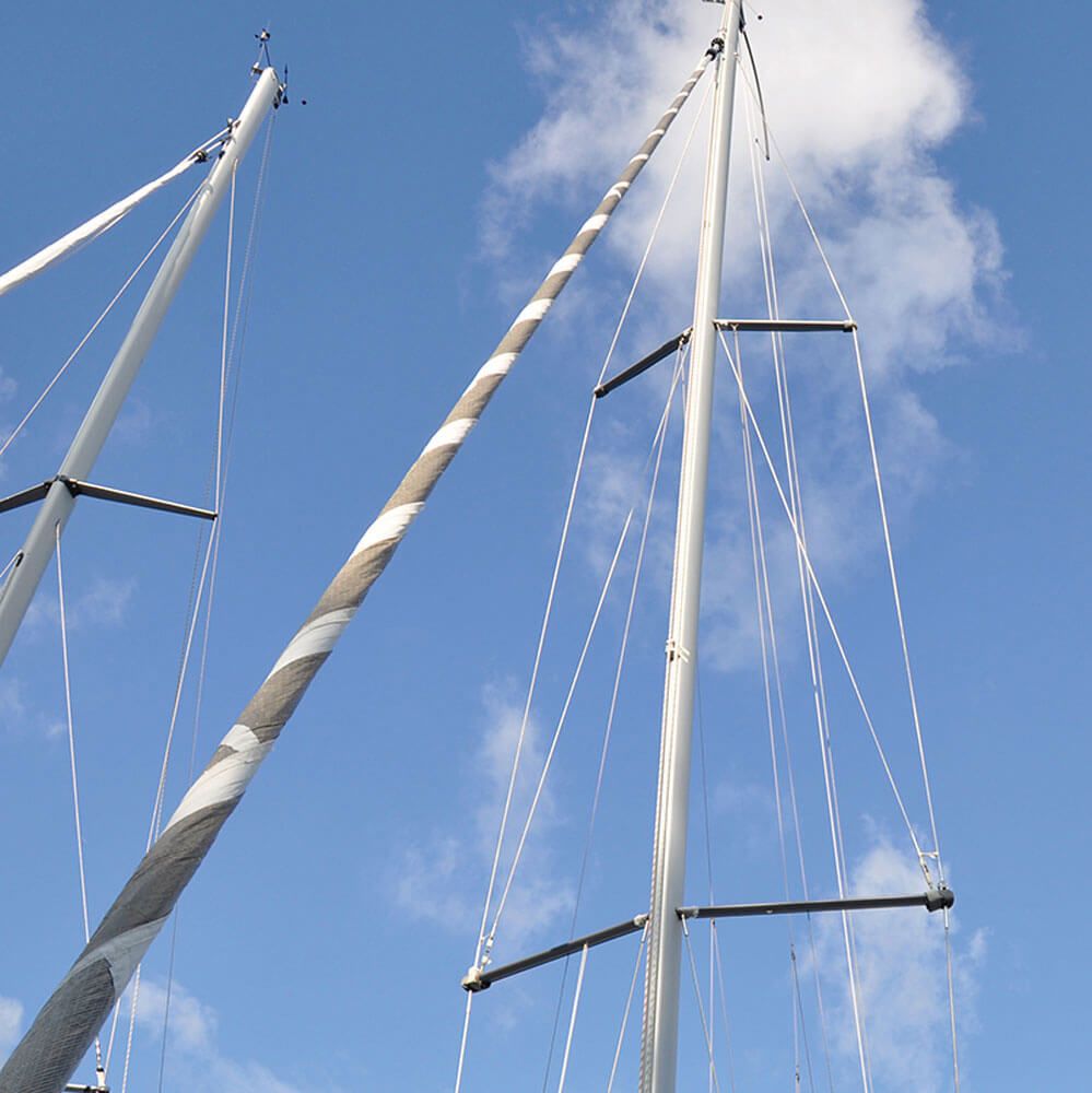 Segel- und Salingsschutz aus UV-beständigem, strapazierfähigem Leder mit Neoprenpolster.