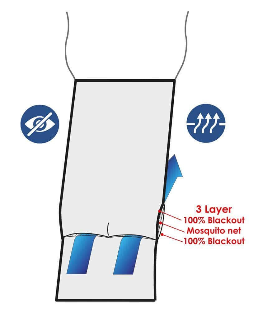 Vedunkelung und Moskitonetz für den Niedergang. Maße 900 x 1800mm mit eingenähtem Bleiband zum Fixieren.